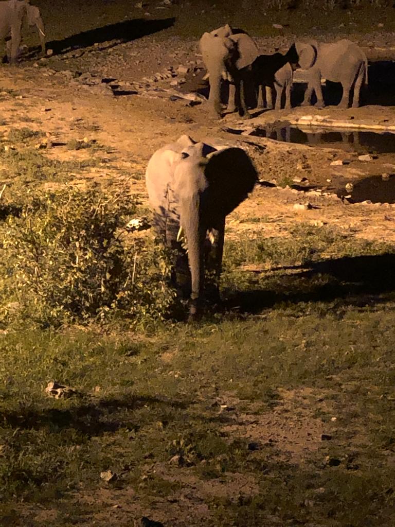 The camp has sanctiouned off an area to watch wildlife should they decide to come up and have themselves some water. The walls are high and the lights are positioned in such a way that the animals cannot really see us.