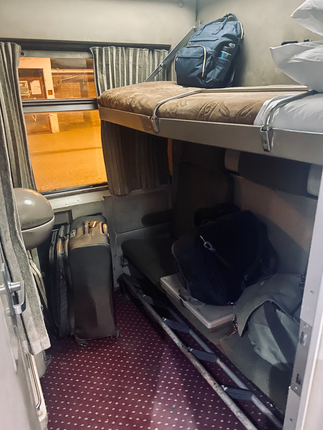 The train attendant came around after dinner to fold out the bottom bunk. Due to my ongoing issues with my stupid knee, I requested the bottom bunk. The top bunk scared me too much to even attempt the upwards crawl. As we had two journeys aboard this rickity delight, we agreed that I would take the upper board on the next leg of the journey.