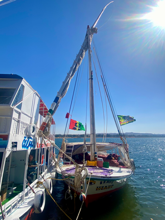 Felucca - (Arabic: فلوكة,) is a traditional wooden sailing boat used in the eastern Mediterranean (particularly along the Nile and in protected waters of the Red Sea.). Its rig consists of one or two lateen sails. They are usually able to board ten passengers and the crew consists of two or three people.