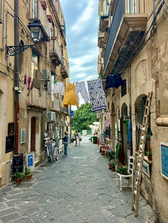 Anyway... back to Ortigia. It is known as one of Sicily's most enchanting destinations... featuring narrow medieval streets, lively piazzas, and stunning sea views. I loved it. My little room was actually just past the ruins of the Temple of Apollo... so of course I had to stop, give a nod to the God of the Sun... as well as his temple… and his legendary birthplace.